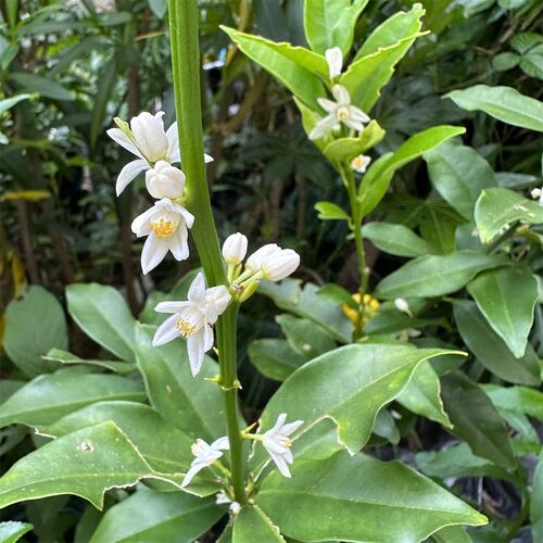 他の柑橘に比べて かなり遅い しかし小さくて 可愛いものです。 白色のキレが良い 2ー3日前はツボミ