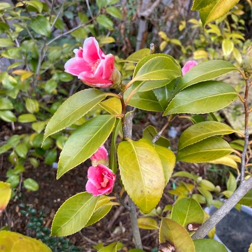 湊晨侘助も咲きました 葉っぱを黄色くさせてごめんね こういうのがいっぱいなので 今年はなんとかしなくちゃ