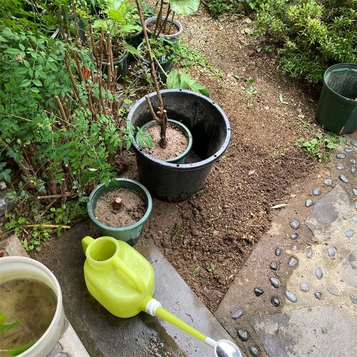 ヒガンバナを掘り起こすと その隣の飛び出して生えていたナンテンと イヌツゲが目立ち移植する事に。 移植というよりは 除去したが、生命力が強そうなので 鉢植えにしてみた。