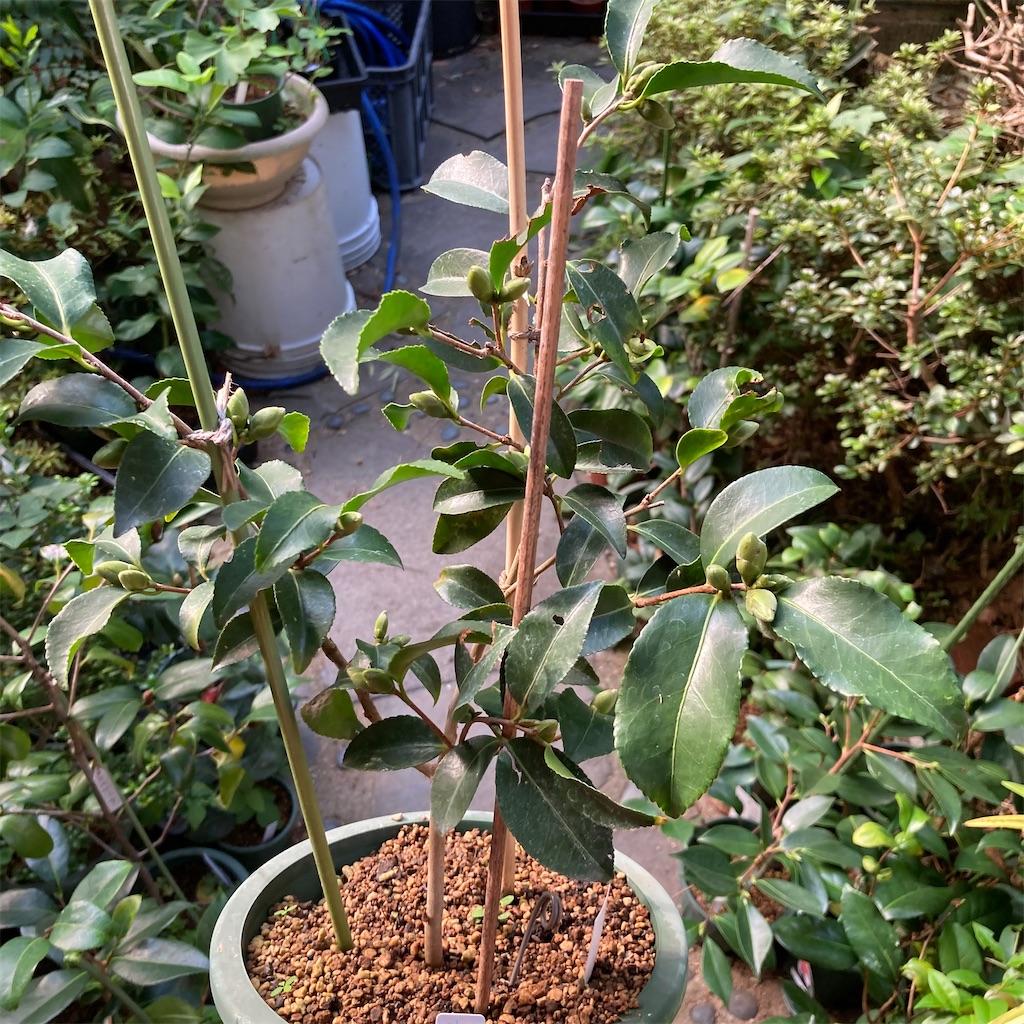 2022-09-10 ハルサザンカ 古金襴に沢山のツボミ 古金襴 ハルサザンカ ハルサザンカ古金襴 サザンカ 去年の暮れにやってきた時は小さかったけど こんなにたくさんツボミつけるんだねー 取った方がいいかな?サザンカ だから大丈夫だよね? 去年の写真見直したら大きさ的にはそんなに変わらない 植えられてたポットが小さかったのが印象的だったんだな。 うちの挿し木苗たちももう一段小さいポットに植えられそうだな。