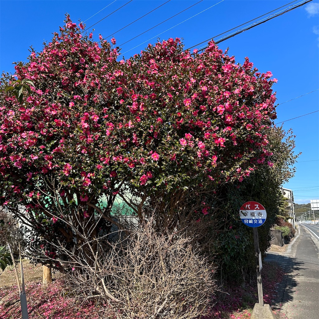 2024-01-02 勘次郎オンステージ サザンカ 勘次郎 タチカン シシガシラ系 街角サザンカ 年末年始の宮崎県下 勘次郎の天下という感じで至る所で圧倒!! 写真撮るの忘れたよ。 かろうじてその片鱗がこれなんだけど 伝わらないね。 国道10号線の宮崎市の北バイパスなんか中央分離帯に勘次郎、沿道に勘次郎。 沿道も普通は獅子頭を植える様なところも勘次郎で。さらには単独で丸く刈り込まれたものがたくさん。 勘次郎オンステージうちの勘次郎なんか足下にも及ばない。 まだまだ精進します