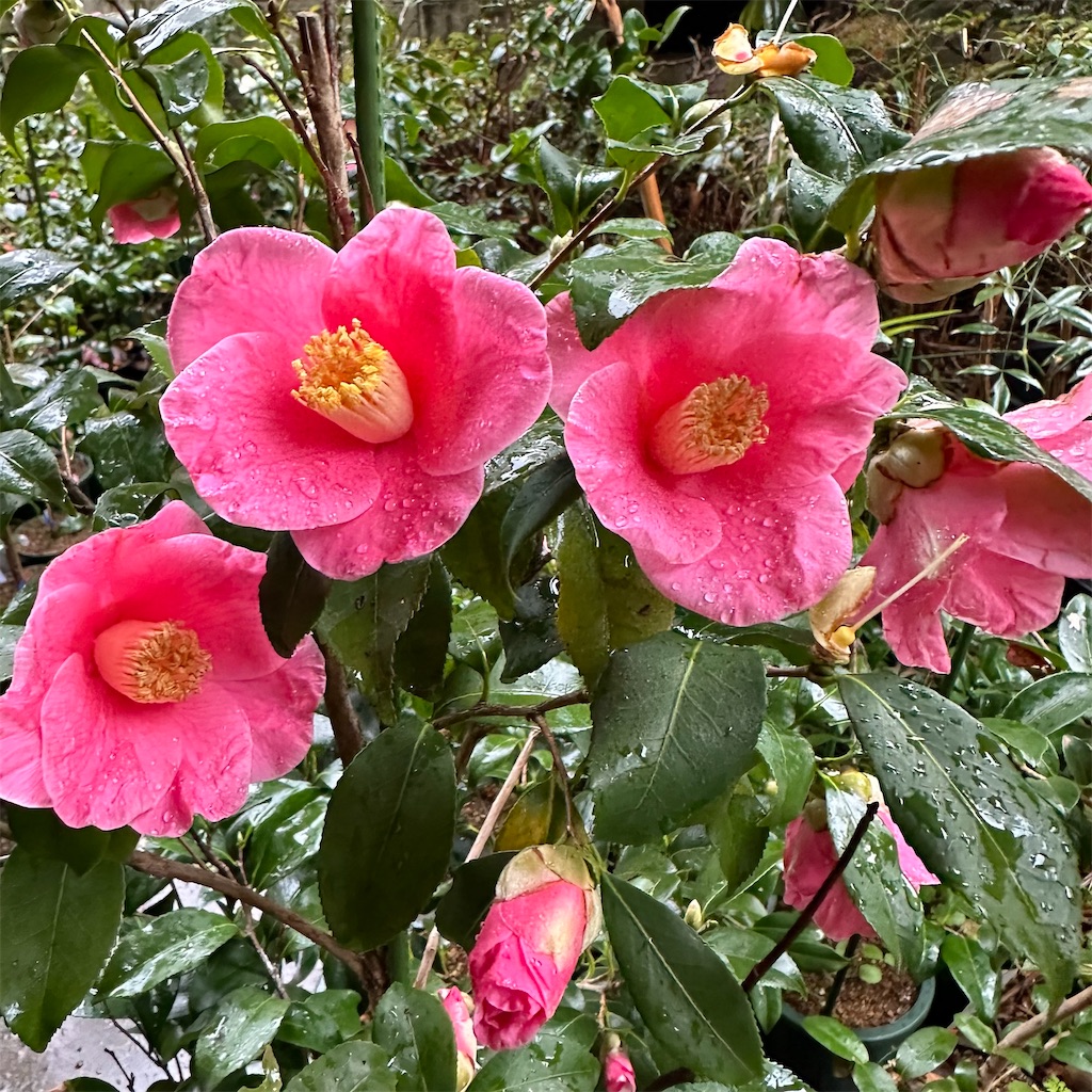 2024-02-19 笑顔の実生 たくさんの花数 笑顔の実生 なんといっても花数が多い 去年初めて咲いたわけで、急成長!というかサザンカの性格だよね。葉は親の笑顔そのものだし。 挿し木した笑顔の幼樹たちもだいたいこの季節がピークなのでさらに成長して11月末から咲き続けてくれると嬉しい。 実生苗がいきなりトップギアに入った感じで。 それでもこの苗は笑顔の親木の根元に生えていたのを21年に掘り起こしたもの。 昨季23年の2月に初めて咲いた記録がある。 他の実生苗たちにも俄然期待したい(^O^) 管理に気持ちが入る。